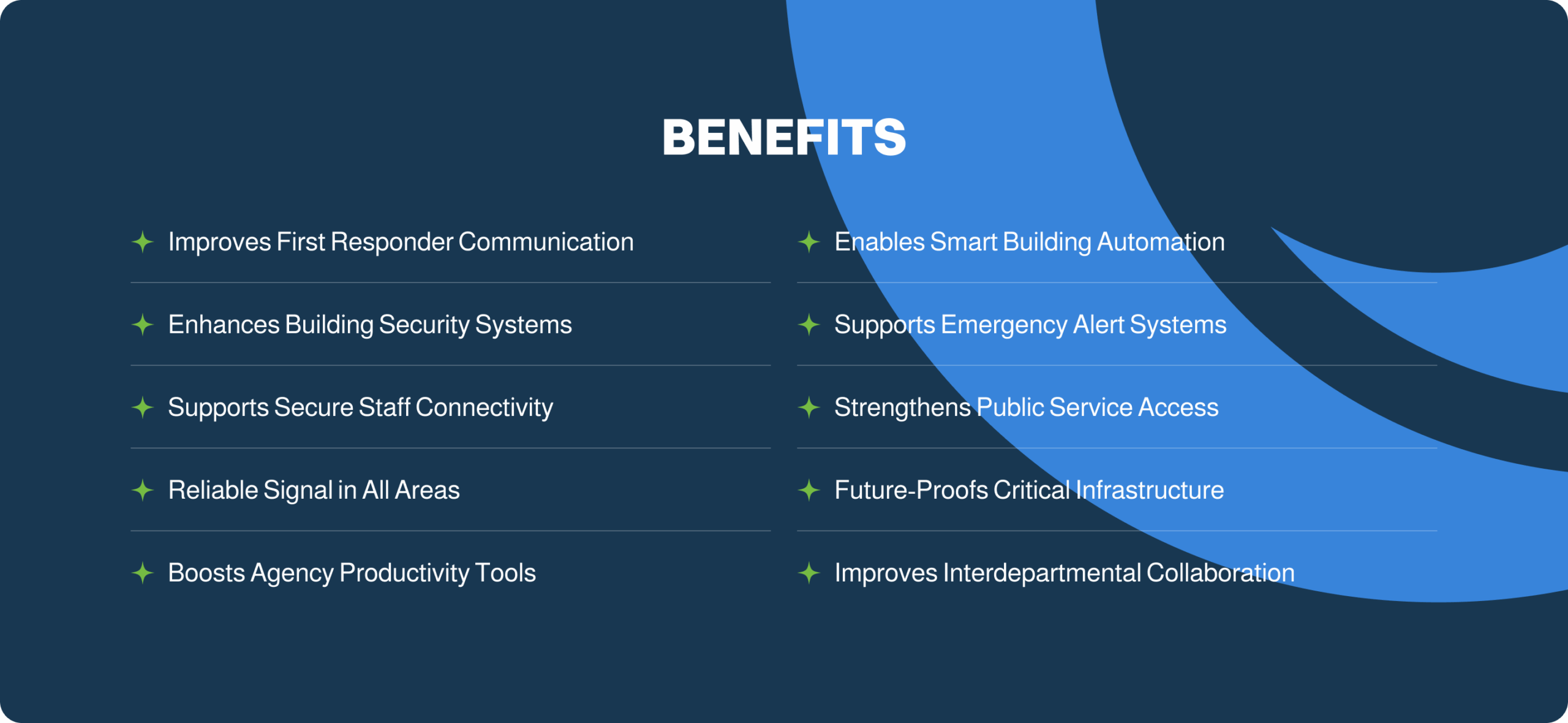 Government buildings have become complex, technology-driven environments that demand strong, secure, and reliable wireless connectivity—both inside the facility and across adjacent campuses. A robust wireless network is critical to support staff productivity, operational efficiency, public safety, and seamless communication between departments and the public.